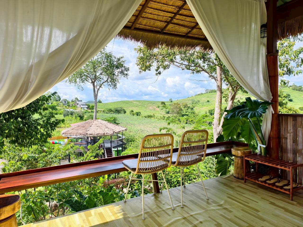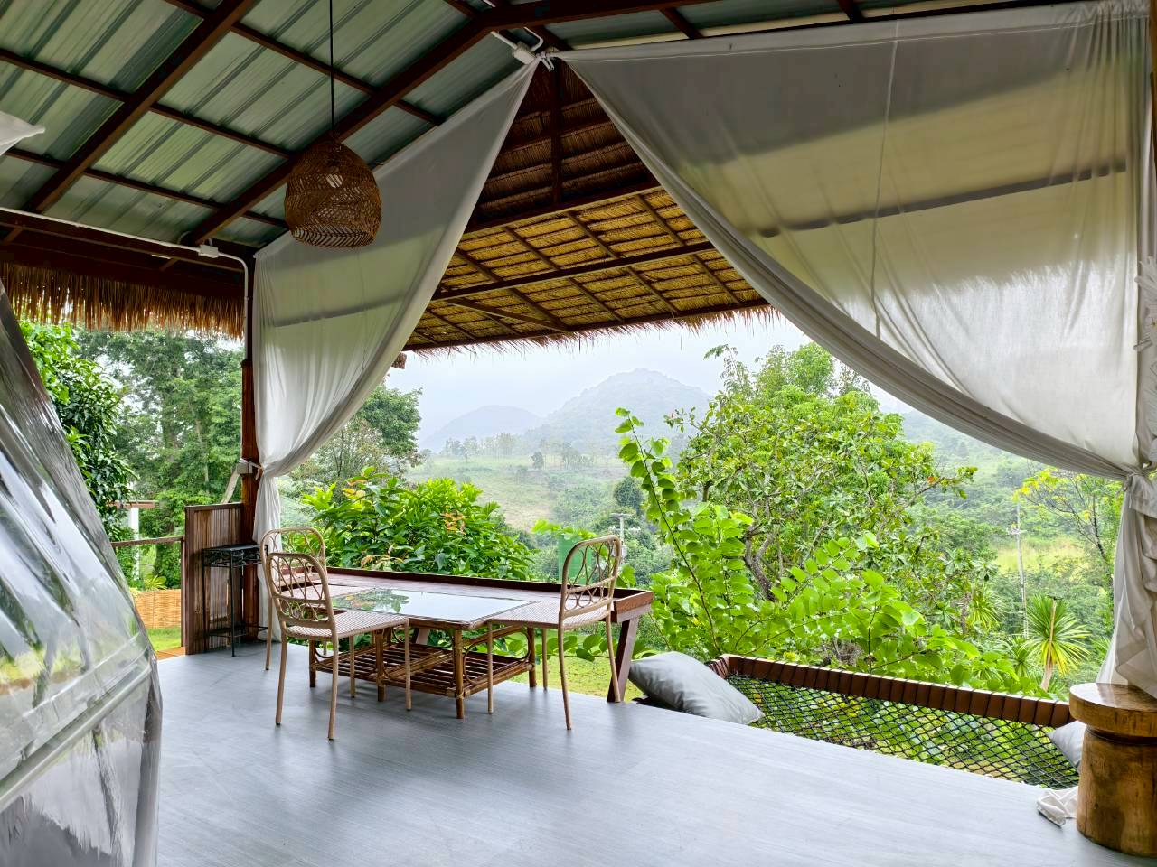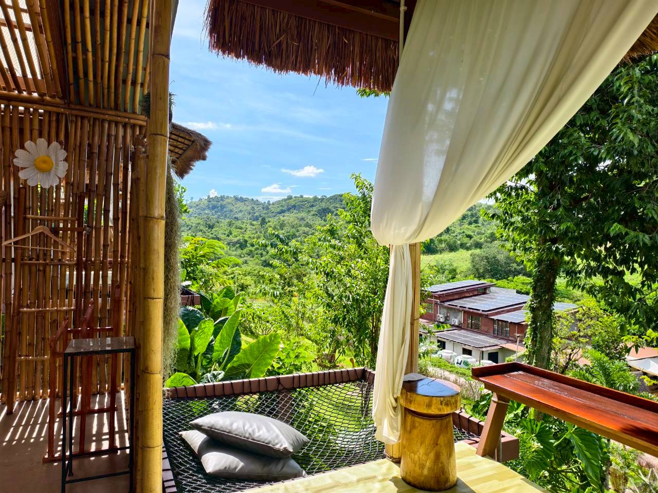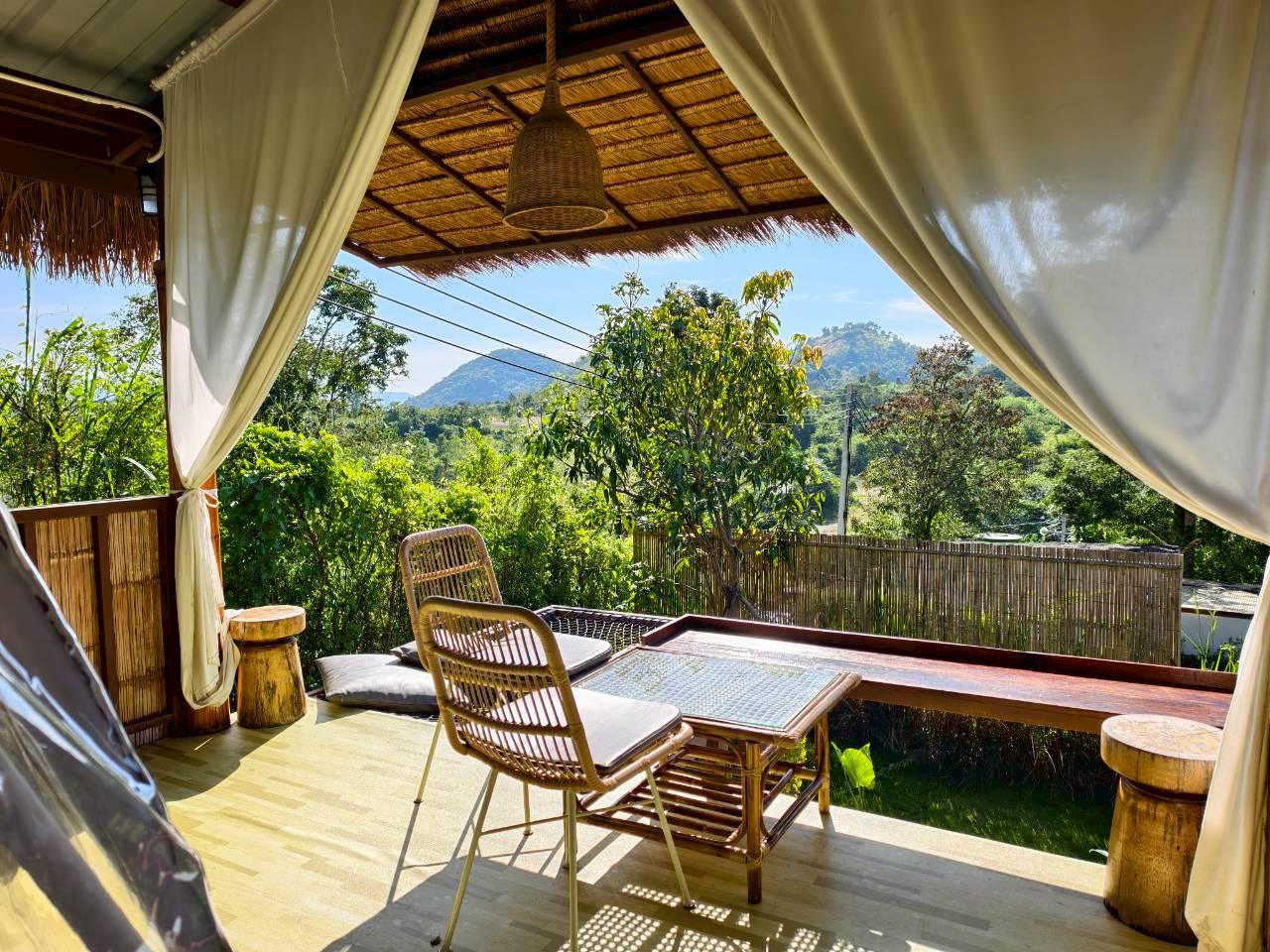 ที่พักตกแต่งน่ารัก เรียบง่าย รู้สึกอบอุ่น ดูกลมกลืนกับธรรมชาติดี มุมถ่ายรูปสวย มีดนตรีเป็นเสียงนกร้อง มีระเบียงให้นั่งชิลๆ ชมวิวภูเขาทุกหลังด้วยนะ ใครกำลังมองหาที่พักใจ ให้ธรรมชาติโอบกอด