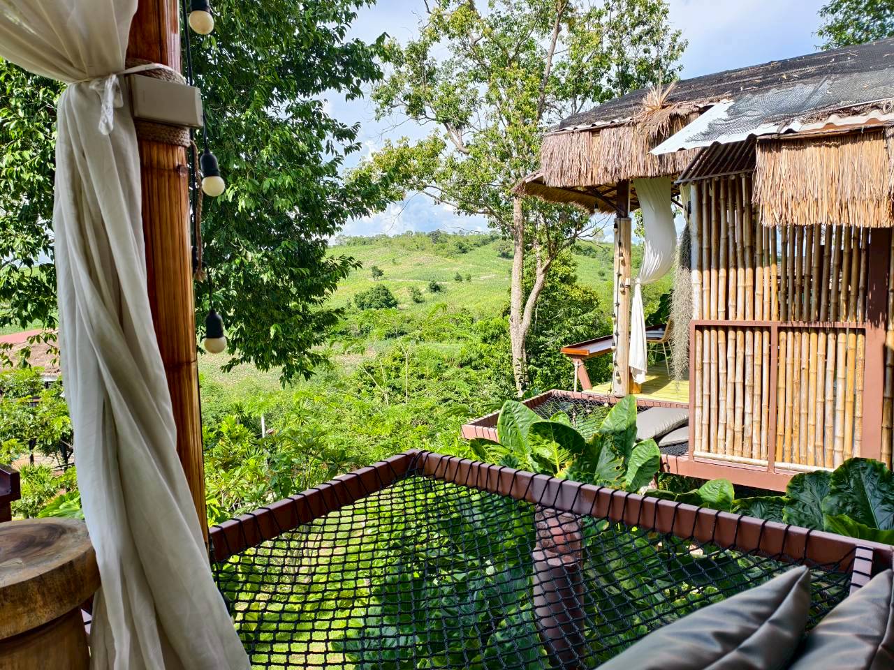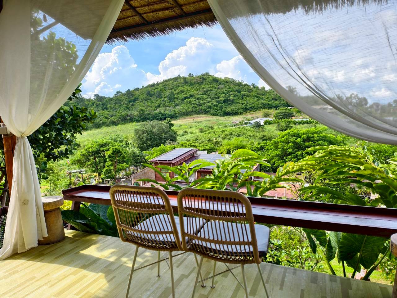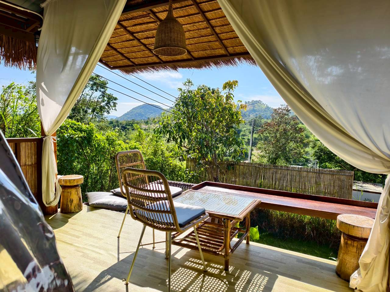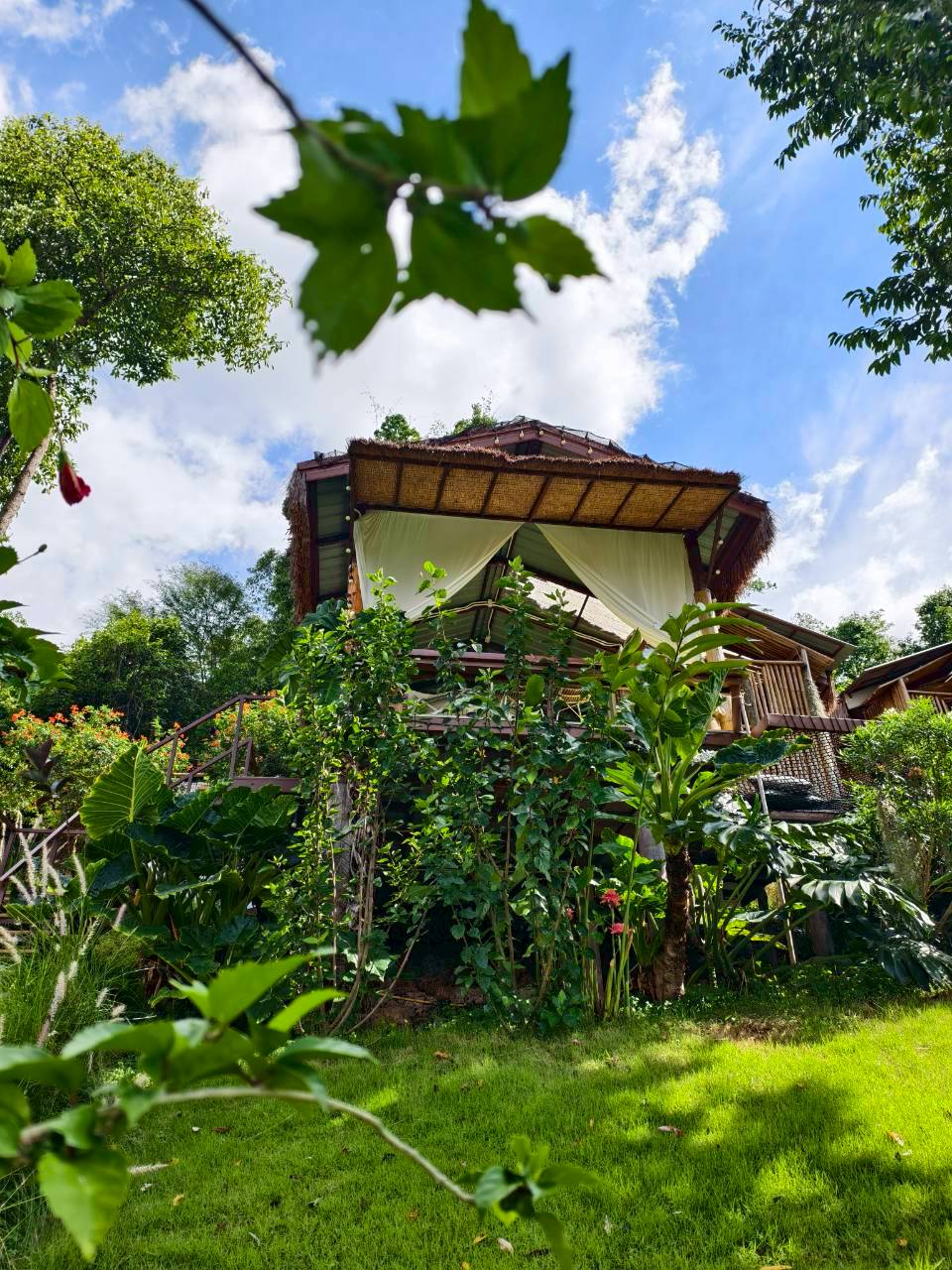 ที่พักตกแต่งน่ารัก เรียบง่าย รู้สึกอบอุ่น ดูกลมกลืนกับธรรมชาติดี มุมถ่ายรูปสวย มีดนตรีเป็นเสียงนกร้อง มีระเบียงให้นั่งชิลๆ ชมวิวภูเขาทุกหลังด้วยนะ ใครกำลังมองหาที่พักใจ ให้ธรรมชาติโอบกอด