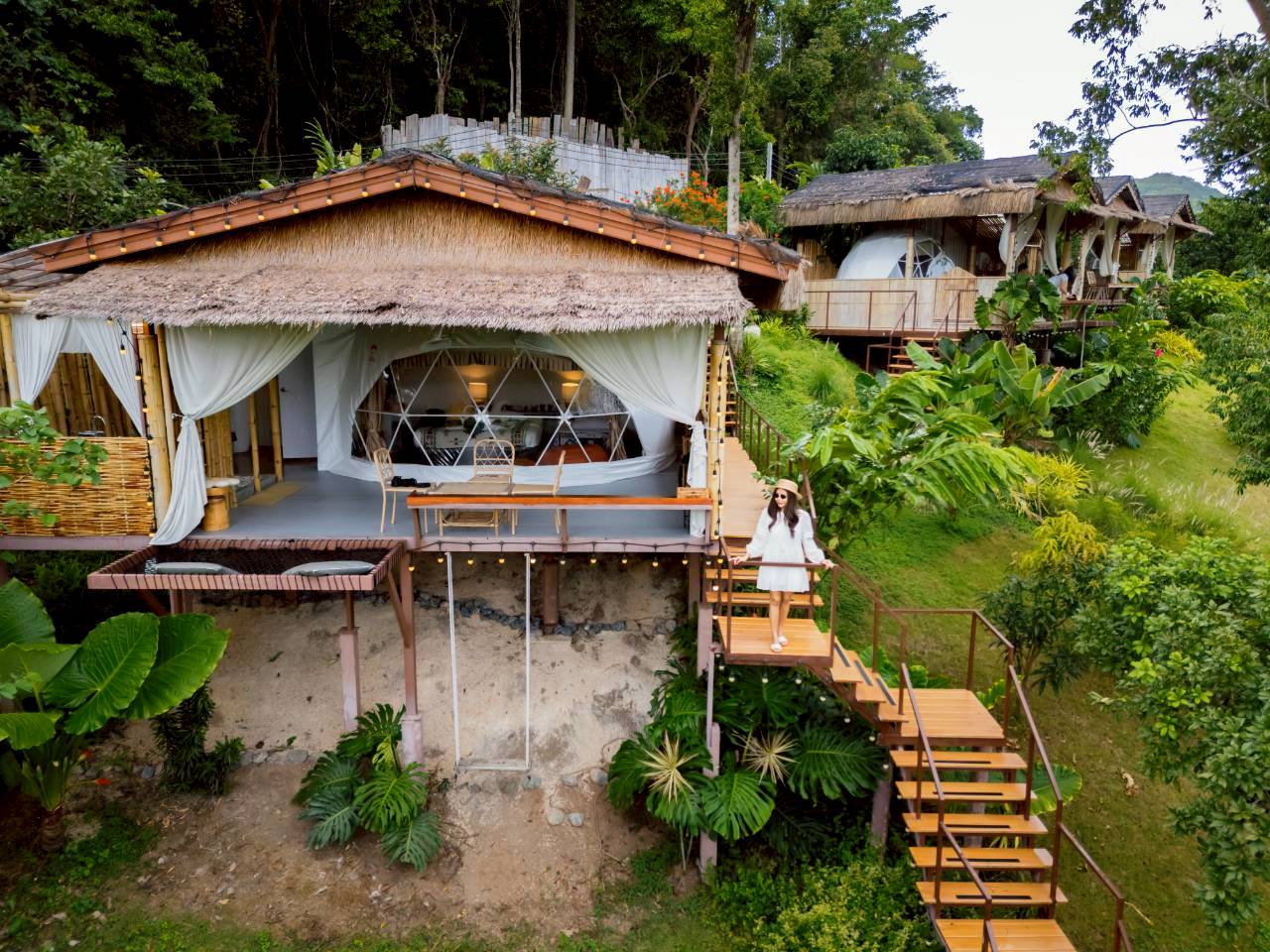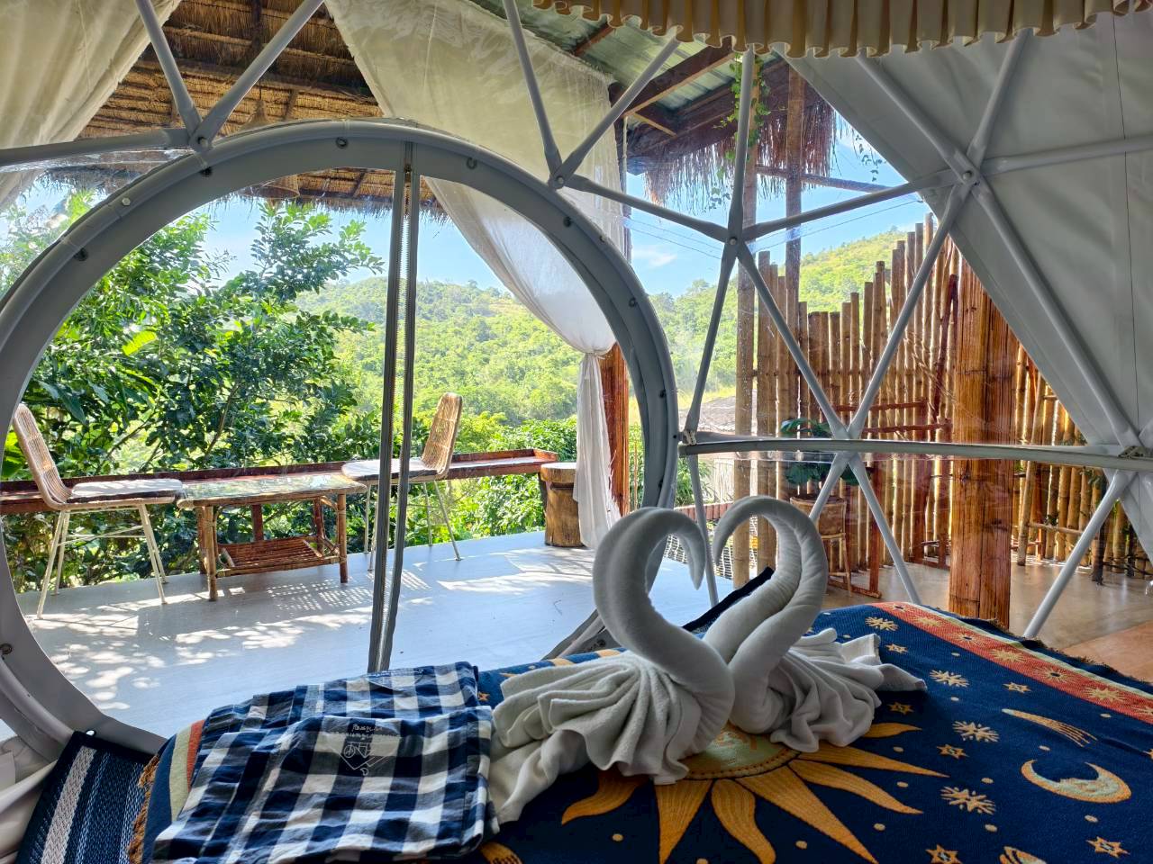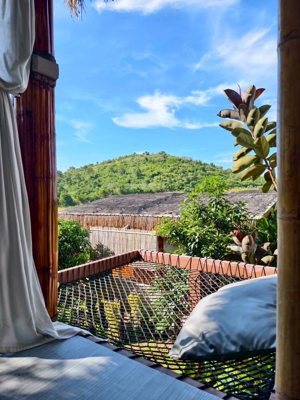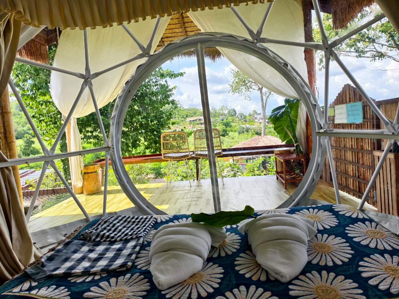ที่พักตกแต่งน่ารัก เรียบง่าย รู้สึกอบอุ่น ดูกลมกลืนกับธรรมชาติดี มุมถ่ายรูปสวย มีดนตรีเป็นเสียงนกร้อง มีระเบียงให้นั่งชิลๆ ชมวิวภูเขาทุกหลังด้วยนะ ใครกำลังมองหาที่พักใจ ให้ธรรมชาติโอบกอด