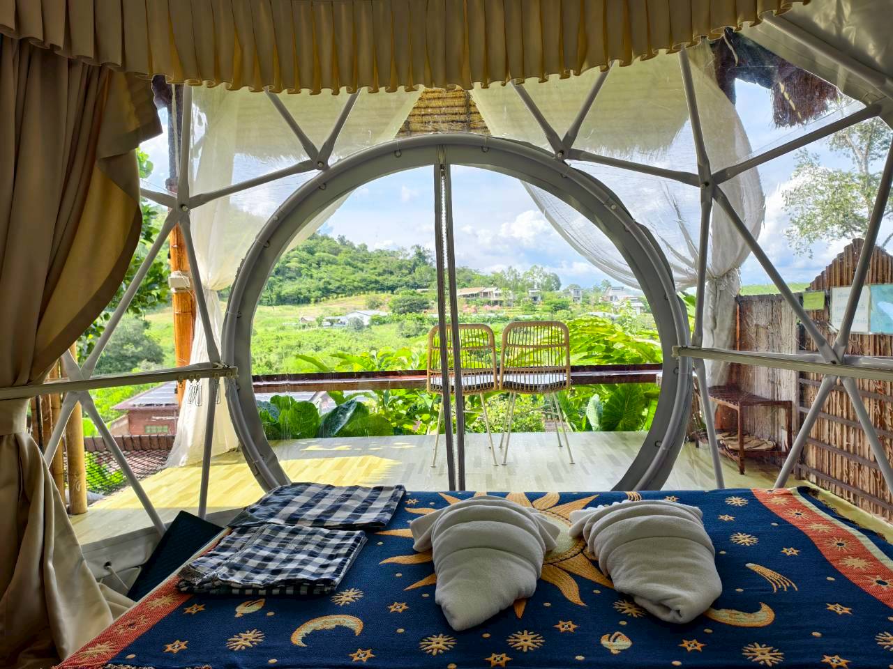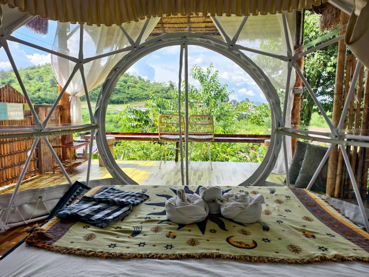 ที่พักและฟาร์มสเตย์เล็กๆ ล้อมรอบไปด้วยธรรมชาติสีเขียวๆ บรรยากาศดี วิวก็สวย มีลมพัดตลอดเวลา แล้วเงียบสงบสุดๆ